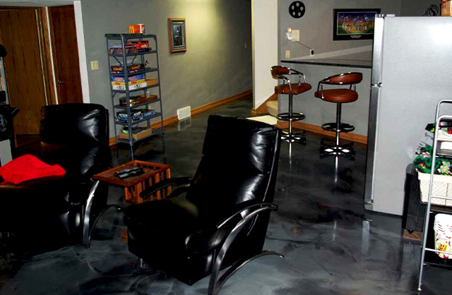 • Flake or quartz epoxy for garages, kitchens, laundry rooms, and basements